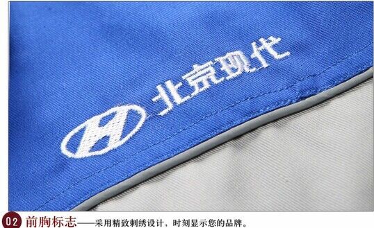 JL-QD246汽修工作服,以淺灰色為主色,搭配寶藍色,胸前采用精致刺繡設計,時刻顯示您的品牌。左中腰間口袋均采用雙層設計,傾斜線條,穩重大氣,時尚插袋,精細袖口,精致筆袋,松緊式下擺。